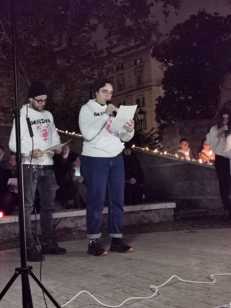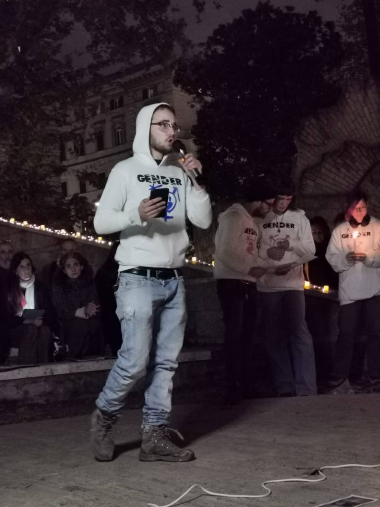 Quest’anno, il TDoR di Roma è stato ospitato in una delle piazze romane più note, piazza Vittorio Emanuele. Si è trattato di un evento estremamente sentito e partecipato; numerose le soggettività ed esponenti della comunità transgender intervenute durante l’evento, tra cui Leila Pereira Daianis, Asia Cione dell’Associazione Libellula, Cristina Leo e Gioele Lavalle della nostra associazione, insieme ad altrettante realtà come Azione Trans, T Genus, Genderlens, Mario Mieli, Famiglie Arcobaleno, Gay Net, Ansic, Gay Center, Differenza Lesbica, Ora D’aria, Non Una Di Meno, Agedo e molte altre.